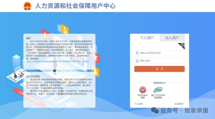 人力资源和社会保障用户中心登录页面图示