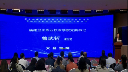 本次会议围绕“卫生健康职业教育课程思政培训研讨及资源库共建共享”两个主题,邀请了8位国内知名的课程思政研究专家、国家级课程思政教学研究中心及示范课程主持人,从学校、教师、专业、课程、课堂、资源建设等层面做了专题讲座。我校党委书记曾武祈作为大会主持之一。