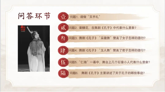 鉴于多数同学对于戏剧领域认知尚浅,本次活动图书馆特增戏剧导赏环节,让同学们更透彻地领会舞剧《孔子》的精妙内涵。
