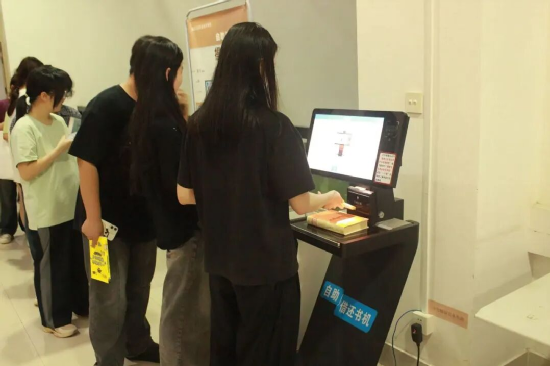 戏剧展播结束后,同学们前往图书馆一楼大厅借阅相关图书。