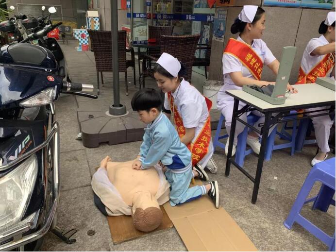 闽卫院校志愿者早早的来到义诊地点,进行事前准备,此次义诊活动中提供免费量血压、测血糖,领药品等多项服务。社区的居民们有序排队,在志愿者的合理安排下,进行测血压,血糖等身体检查。同学们非常认真尽心尽责为前来参与的居民们答疑解忧。志愿者们还对前来的居民们讲解了定期检查身体的重要性,鼓励大家要树立积极乐观的生活态度,养成健康的生活习惯。对于有可能发生的危险情况,志愿者向居民演示对待心脏骤停时紧急心肺复苏的基本抢救操作,指导居民依照步骤,纠正错误,细心教导居民心肺复苏的操作流程,义诊活动圆满成功!