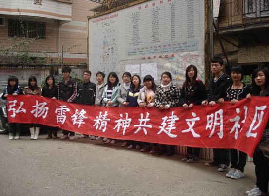 为了更好地将青年志愿者活动落实到位,学习发扬雷锋精神,药学系组织青年志愿者于3月5日来到达道社区,开展以“弘扬雷锋精神,共建文明社区”为主题的志愿者活动。在活动中,我系志愿者为社区居民宣传文明知识,共同维护社区美好环境,并前往社区老人院,帮助孤寡老人做一些力所能及的事情。通过此次的活动,让同学们切身感受到了作为一名青年志愿者的光荣职责。大家纷纷表示,今后要时刻牢记雷锋精神,将雷锋精神发扬光大,踊跃参加社会公益活动,关注社会,关爱他人。