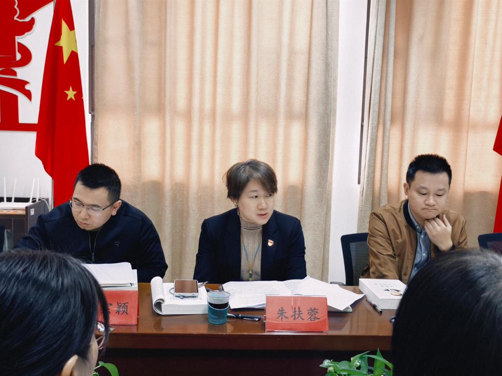 为全面深入学习领会党的二十届四中全会精神及学校第三次党代会精神,扎实推进学习宣传贯彻工作走深走实,引导学校广大党员干部师生把思想和行动统一到全会精神上来。校党委委员、副校长朱扶蓉莅临马克思主义学院作党的二十届四中全会精神与学校第三次党代会精神宣讲。马院党政领导班子成员、党务干部参加会议,宣讲由马院党总支书记熊美兰主持。