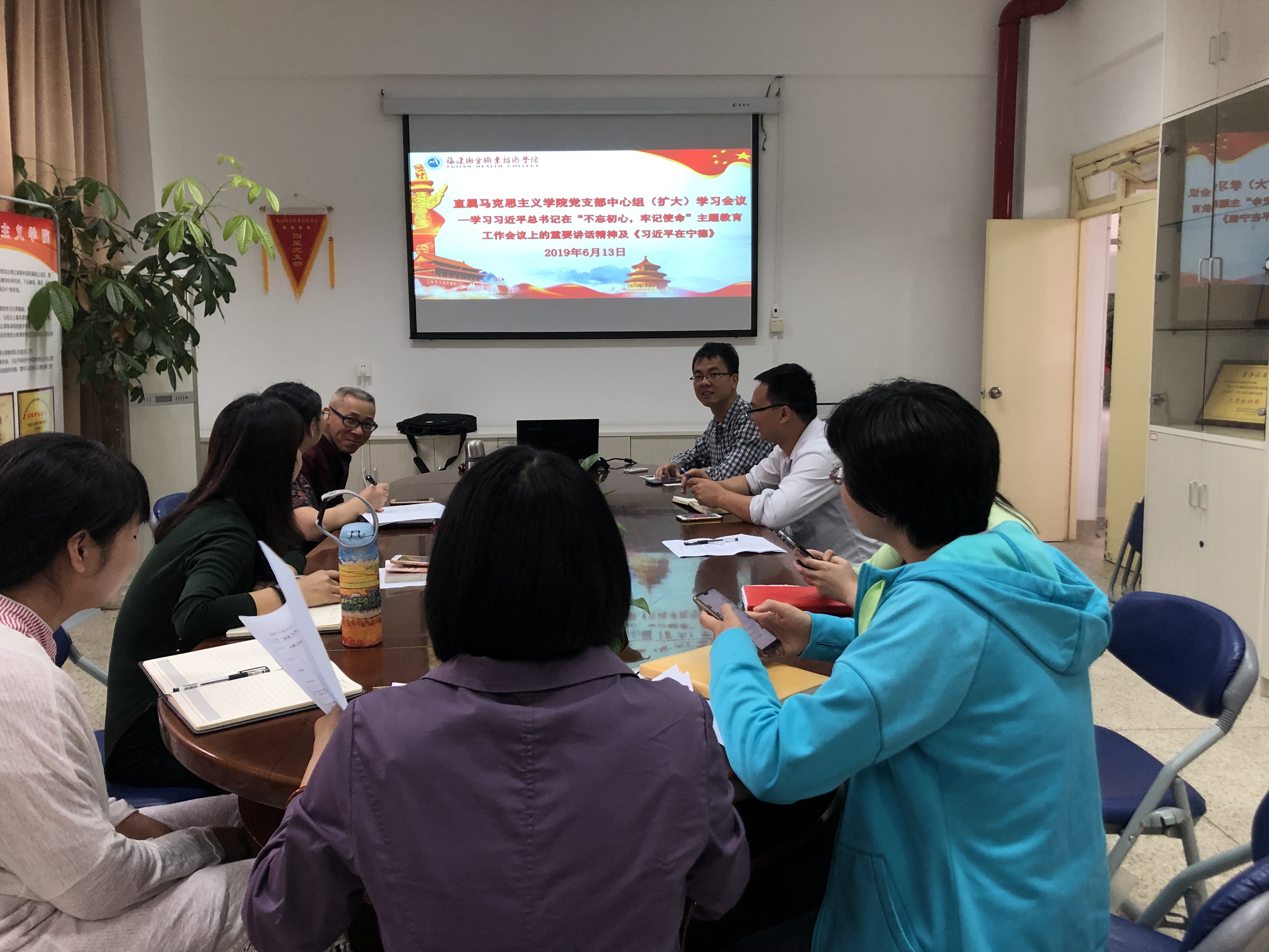 6月13日上午,直属马克思主义学院党支部宣传委员江洪主持召开党支部中心组学习(扩大)会议,学习习近平总书记在“不忘初心、牢记使命”主题教育工作会议上的重要讲话精神及《习近平在宁德》。