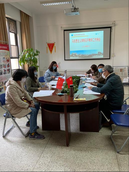 为进一步落实教育部、市教委以及学校关于疫情防控工作的相关精神要求,在切实加强新型冠状病毒肺炎疫情防控工作的同时,推进各项教学工作稳步开展,马克思主义学院(以下简称“马院”)于2020年4月8日下午2点在行政楼办公室107召开教学工作例会。会议由马院院长熊美兰主持,马院就业与军事教研室主任魏立娜、概论教研室主任胡济林、基础教研室主任陈洪月、办公室主任杨盈及教学秘书林美辰均参加此次会议。