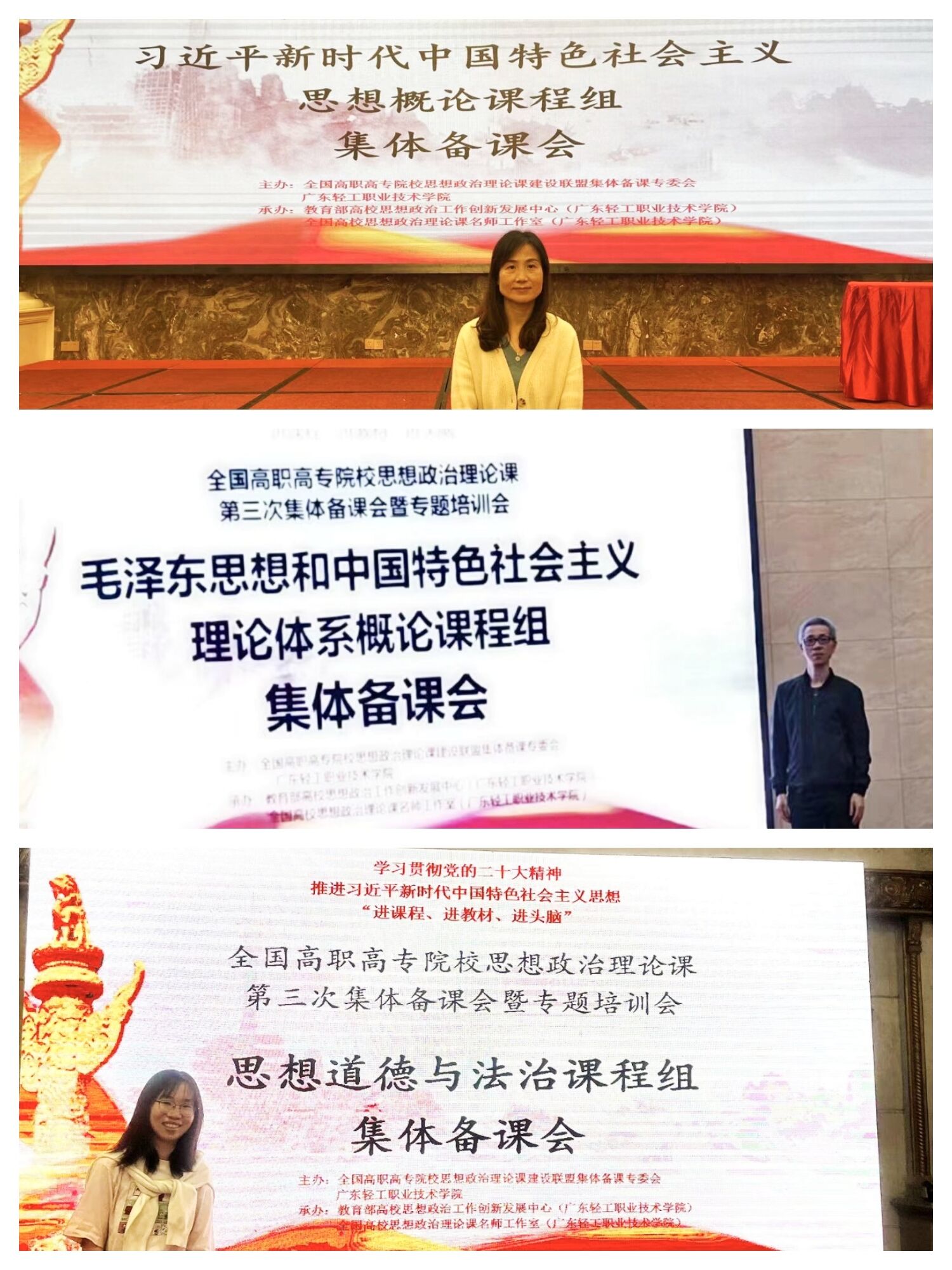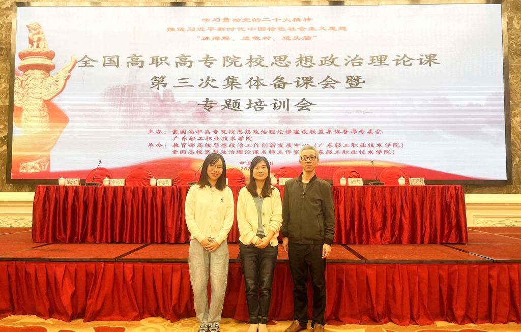 2023年5月11日至14日,全国高职高专院校思想政治理论课第三次集体备课会暨专题培训会在广州顺利举行。马克思主义学院副院长来朋珍、概论教研室主任胡济林以及思想道德与法治教研室主任颜冰凤参加了本次培训。
