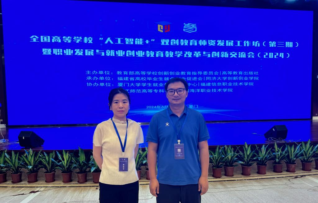 2024年6月14日至16日,我校马克思主义学院教师张崇飞、公共卫生与健康管理学院辅导员王开晔前往厦门,参加了由教育部高等学校创新创业教育指导委员会联合高等教育出版社举办全国高等学校“人工智能+”双创教育师资发展工作坊(第三期)暨高职院校职业发展与就业创业教育教学改革与创新交流会(2024)。此次活动汇聚了来自福建省内多所职业院校双创教育领域的管理者、骨干教师、教指委委员以及专家学者,共同探讨“人工智能+双创教育”的最新动态、挑战与机遇。