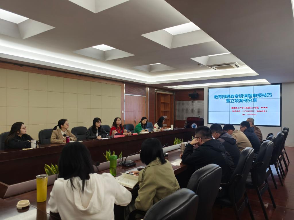 为深入弘扬践行教育家精神,将精神内涵深度融入教师课堂教学、科学研究与社会实践各环节,铸牢教育家精神践行主阵地,切实提升教师思政专项课题申报质量与立项成功率,11月27日,马克思主义学院邀请福建理工大学马克思主义学院教授陈育钦在厚德楼四楼会议室开展《教育部思政专项课题申报技巧——以往年中标的课题为例》的专题讲座。马克思主义学院院长熊美兰主持,马克思主义学院全体专兼课教师参加。