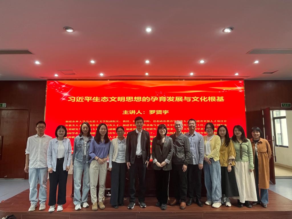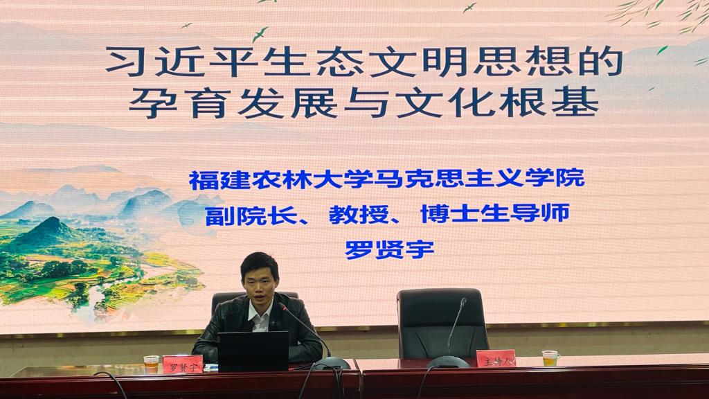 为深入学习习近平生态文明思想,引导党员师生追溯其在福建工作期间的孕育与实践历程,进一步树立正确政绩观,4月16日,马克思主义学院第二党支部在笃行楼四楼报告厅举办主题党日活动,邀请福建农林大学马克思主义学院副院长罗贤宇教授作专题辅导报告。支部全体教师党员及学生代表参加学习。