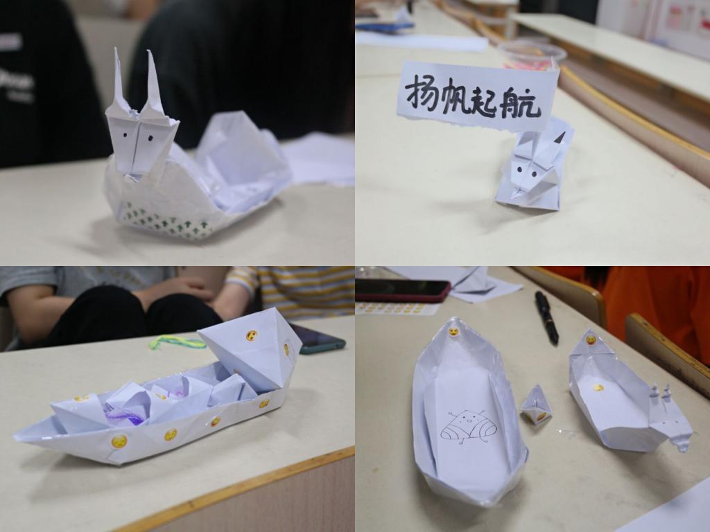 活动开始,社长钟艺芳首先对本次活动开展情况、端午节的相关知识及本次活动的游戏规则进行了介绍。成员们以小组为单位纷纷开始发挥创意折龙舟。紧接着,现场开展了大家期待已久的吹龙舟比赛。成员们踊跃参与,气氛热烈。