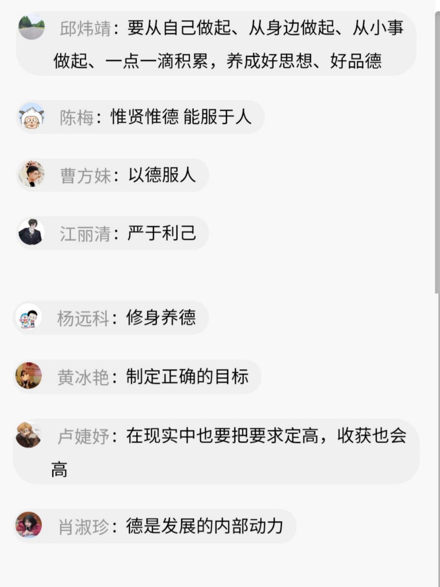 同学们学习后纷纷表示习近平总书记对道德的系列论述和要求对自己成长也十分有帮助,在以后的学习、工作、生活中,要加强道德修养,自律自强,做对社会、对国家有用的人。