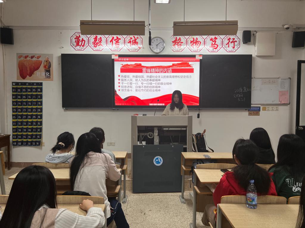 在胡济林报告结束后,读书社青春队还开展学习雷锋精神的活动,由郭雨佳、蔡晓芹两位同学进行PPT汇报,同学们由此加深了对雷锋精神的理解,明白为人民服务的道理。