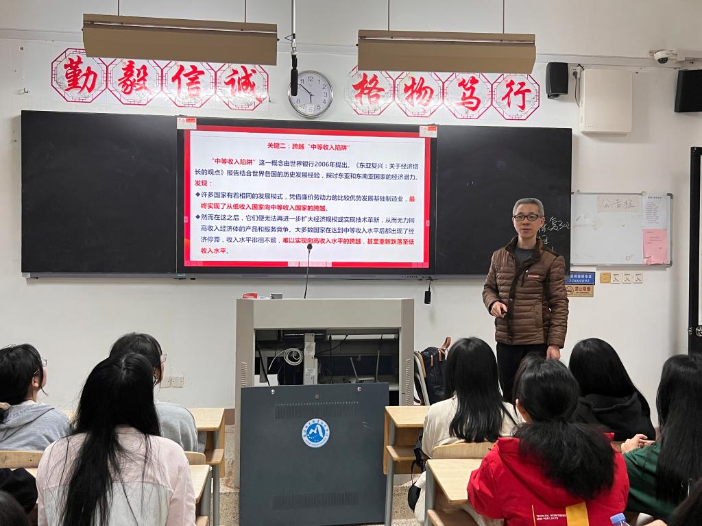 在全国两会上,习近平总书记多次发表重要讲话,强调要着力推动高质量发展。为了更好地学习贯彻全国两会精神,2023年3月21日,胡济林副教授在教学楼103为习近平新时代中国特色社会主义思想读书社青春队开展“中国式现代化与高质量发展”的专题报告。