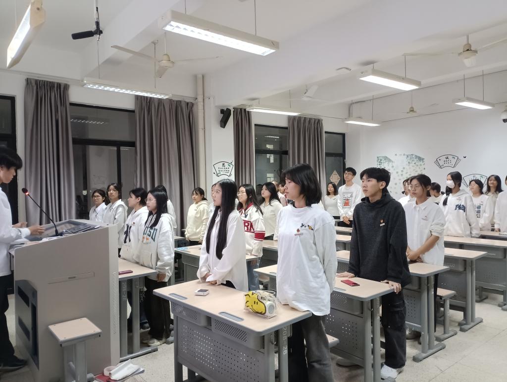 大会第一项议程:全体起立奏唱团歌。伴随着团歌奋进激昂的旋律,读书社功能型团支部成立大会正式拉开帷幕。
