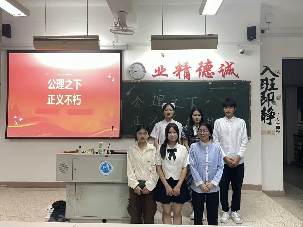 为提升闽卫院学子法律意识与法治思维能力,在校园内积极营造出尊法学法守法用法的良好氛围,2024年6月6日,青年法学社在教学楼209开展“公理之下正义不朽”PPT演讲比赛决赛。本次决赛由马克思主义学院郑冰老师、邹亚彤老师以及三位社团负责人担任评委。