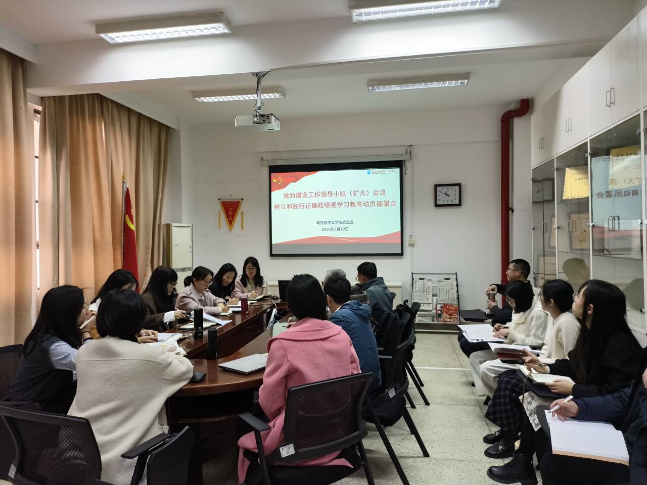 为贯彻落实党中央、省委、省委教育工委和学校党委关于开展树立和践行正确政绩观学习教育有关要求,2026年3月12日,马院召开党的建设工作领导小组(扩大)会议,研究部署开展树立和践行正确政绩观学习教育工作。马院党总支书记熊美兰主持会议并作动员讲话,马院全体教师党员参加会议。