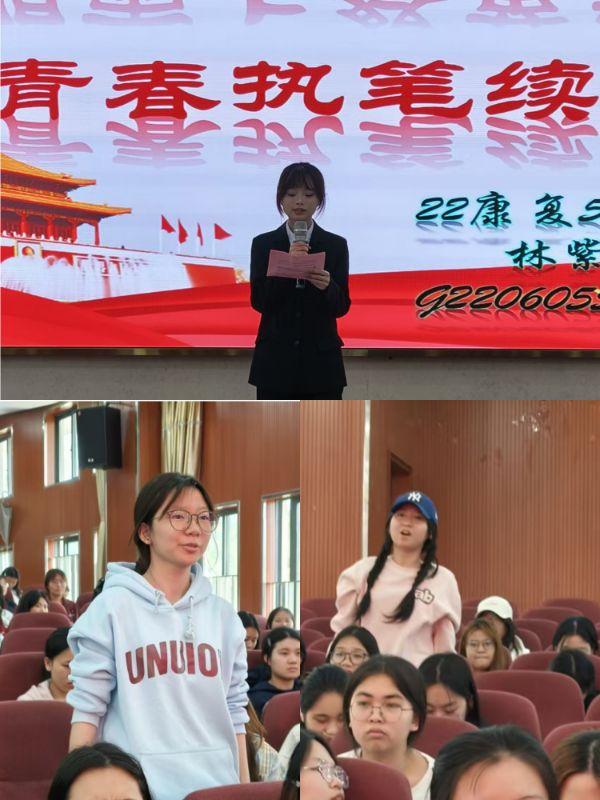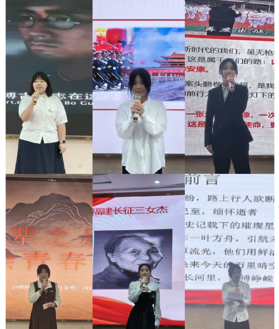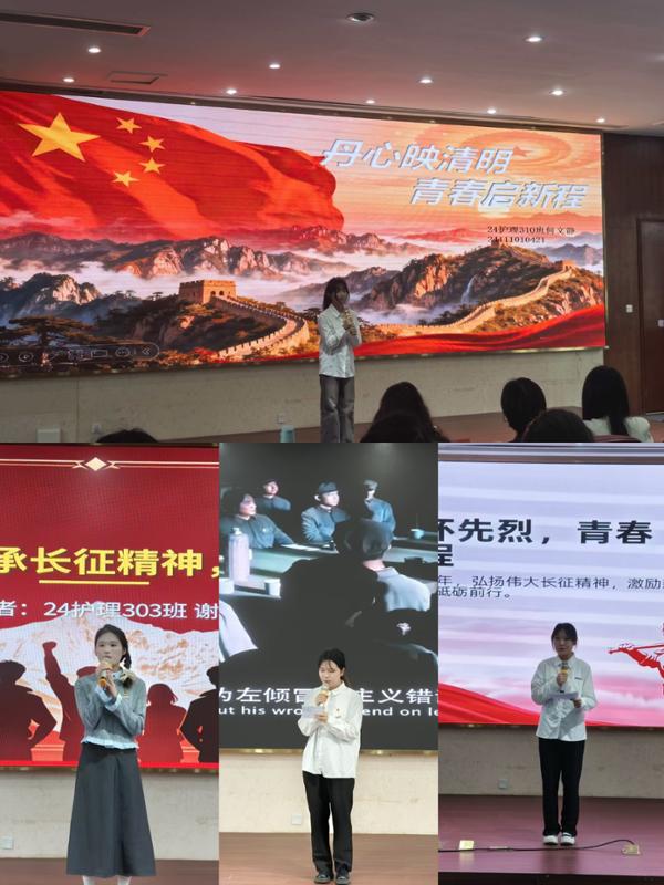 最让人动容的是24级护理303班谢欢灵同学,她以《清明忆长征,闽魂励青春》真挚动人的演讲,抒发浓厚的闽地红色情怀,让本土精神焕发全新生命力。24级临床601班许慧珍同学将长征精神与医路求索相结合,体现了青年学子对职业道路的深刻思考;24级预防301班陈邵菲同学借历史星辰的点点星光,照亮前行道路。24级康复501班林紫滢结合闽西故事,用诗意的语言讲述历史的峥嵘岁月。25级影像302班李嘉韵同学的演讲声情并茂,以生动笔触传递红色力量。25级健管302班寇璞媛同学《跨越时空对话两代人,诠释信仰的青春接力》以跨时空对话的形式,生动展现了信仰的传承。