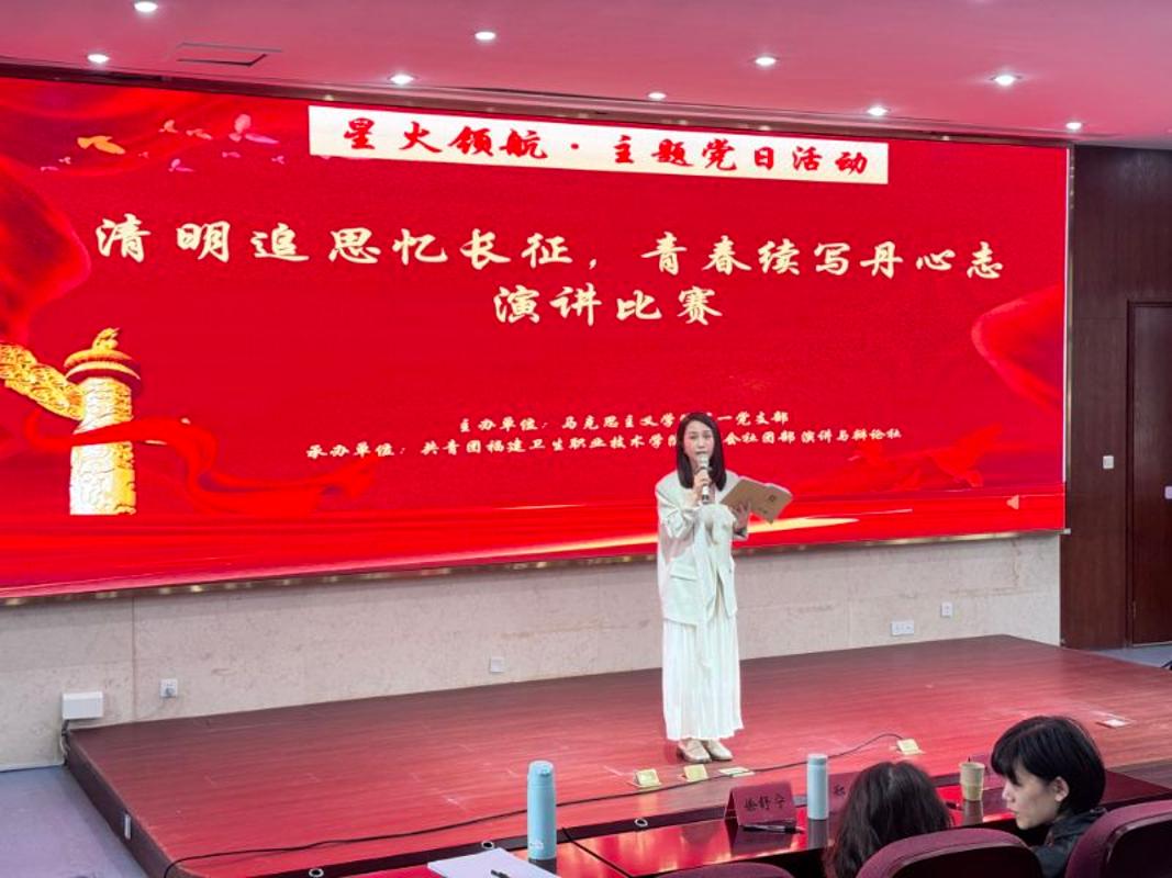 清明时节雨纷纷,缅怀先烈寄哀思。为引导同学们铭记历史、传承红色基因,2026年4月2日,由马克思主义学院第一党支部主办、校团委社团部演讲与辩论社承办的“清明追思忆长征 青春续写丹心志”主题演讲比赛,在笃行楼四楼会议室隆重举行。校党委曾武祈书记、福建艺术职业学院李秋芳老师以及马克思主义学院第一党支部全体党员出席了本次活动。