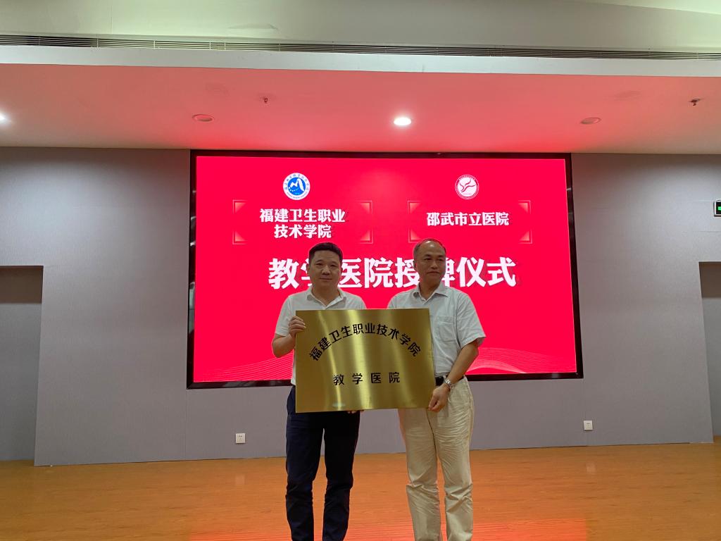 许能锋一行在邵武市立医院举行教学医院授牌仪式并召开校院合作班洽谈会。许能锋提出,校院双方在原有良好合作的基础上建立了教学医院合作关系,应进一步加强教学工作对接,以合作共双赢、携手同发展为目的,互相支持、双向介入、优势互补、资源互用,共同培养社会需求的医学人才。