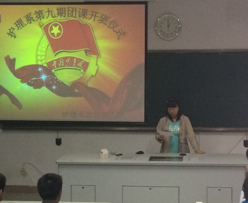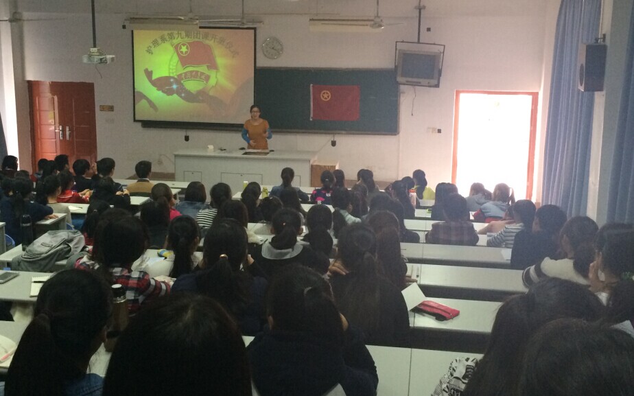 2014年11月11日,福建卫生职业技术学院护理系第九期业余团校培训开班典礼在护理系第一阶梯教室举行,受邀前来参加开班典礼嘉宾有护理系团总支书记林媛老师、护理系团总支副书记张云霞老师、护理系团总支副书记林丹丹同学及各班学员代表。