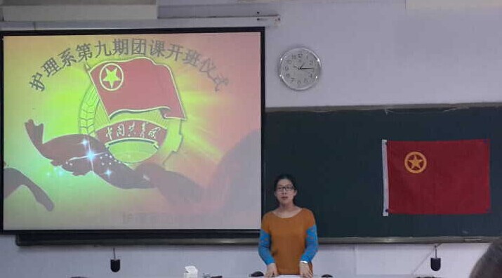 活动在嘹亮的国歌中拉开维幕,护理系团总支副书记张云霞老师宣布开班典礼正式开始。护理系团总支纪检委员宣读中国共青团的性质与任务,希望学员们时刻以共青团员的标准来严格要求自己、约束自己。学员代表上台发言,用自己的实际行动作表率。护理系团总支书记林媛老师通过讲述自己的亲身经历和身边人的故事,向学员们讲述了团的章程、性质,以及作为一名合格中国共青团员应有的素养和政治觉悟,她对本次新生学员提出了新的展望与要求,并表示共青团员是国家强有力的助手和后备军,希望各位学员能够积极参加团课培训,严于律己,顺利结业。
