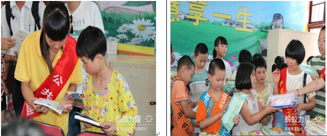 我看来,蚂蚁力量就是我们高校大学生志愿者素质教育的有效载体,也是我们大学生“理论联系实际”的最好阵营,更是大学生服务社会的最好平台。 “三下乡”不仅磨练了我们青年大学生的意志,也培养了大家理论运用与实际的能力以及团队合作的精神,实现了社会实践过程中“服务社会、锻炼成才”的目标,真正做到“双赢”。