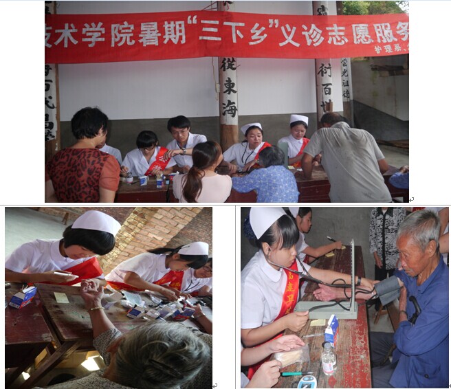 今年暑期“三下乡”社会实践工作,得到了学校领导的高度重视和大力支持,为活动的开展提供了有利的条件和切实的保障,把社会实践活动纳入我校大学生素质教育计划,今年特别成立了以党总支书记谢涛为带队教师、“蚂蚁力量”负责人听涛先生、护理系团总支成员、学生会成员组成暑期“三下乡”社会实践队伍。大家制定了详细周密的计划,由校团委负责具体实施,确保活动圆满成功。同时增加了社会实践活动的经费投入,保证了活动的更好开展,取得更好的效果。
