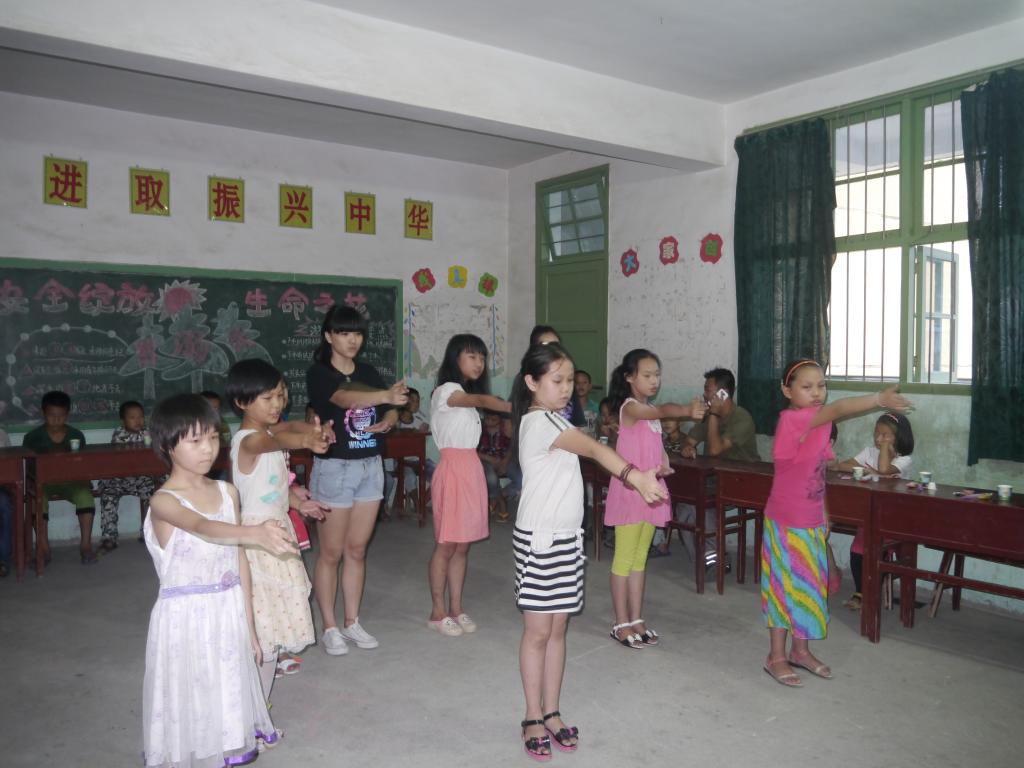 两周转瞬即逝,7月17日晚,志愿者们和当地的同学们共同举办了一场小型的欢送晚会。随着音乐响起,志愿者们为大家献上婀娜的印度舞、活力四射的街舞、同学们手语《爱的翅膀》、健美操、舞蹈《小苹果》、《快闪》等。开展丰富多彩的文艺演出,为孩子们提供一个展示才艺、发挥特长的平台,充分调动孩子们的积极性与团结性,展示孩子们奋发向上的精神风貌和表演才能。欢快动感的音乐、活泼可爱的舞姿将大家带入的喜悦气氛中。趣味游戏再次将晚会推向另一个高潮,游戏激烈地进行着,带动着整场的气氛,游戏活动不仅丰富同学们课余生活,还促进同学之间交流,锻炼和培养同学之间交流与合作的能力,促进同学之间良好沟通习惯的养成。活动融合知识性、趣味性、感悟性为一体,创造了良好的儿童成长与发展的平台。晚会临近尾声,一首《再见》为志愿者和同学们相处的点点滴滴画上句号。