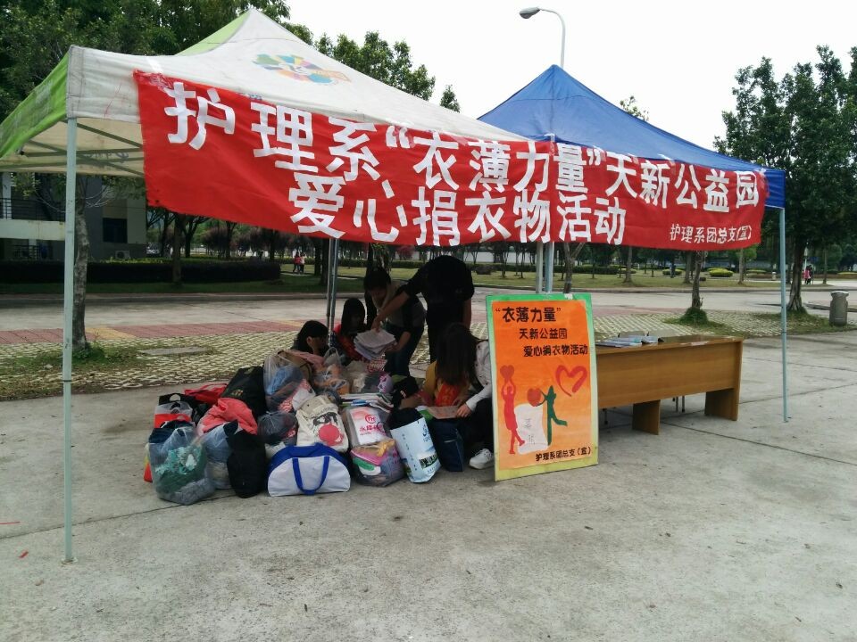 2014年4月24日-25日,护理系团总支志愿者携手天新公益园开展以“衣薄力量”旧衣物捐赠活动。