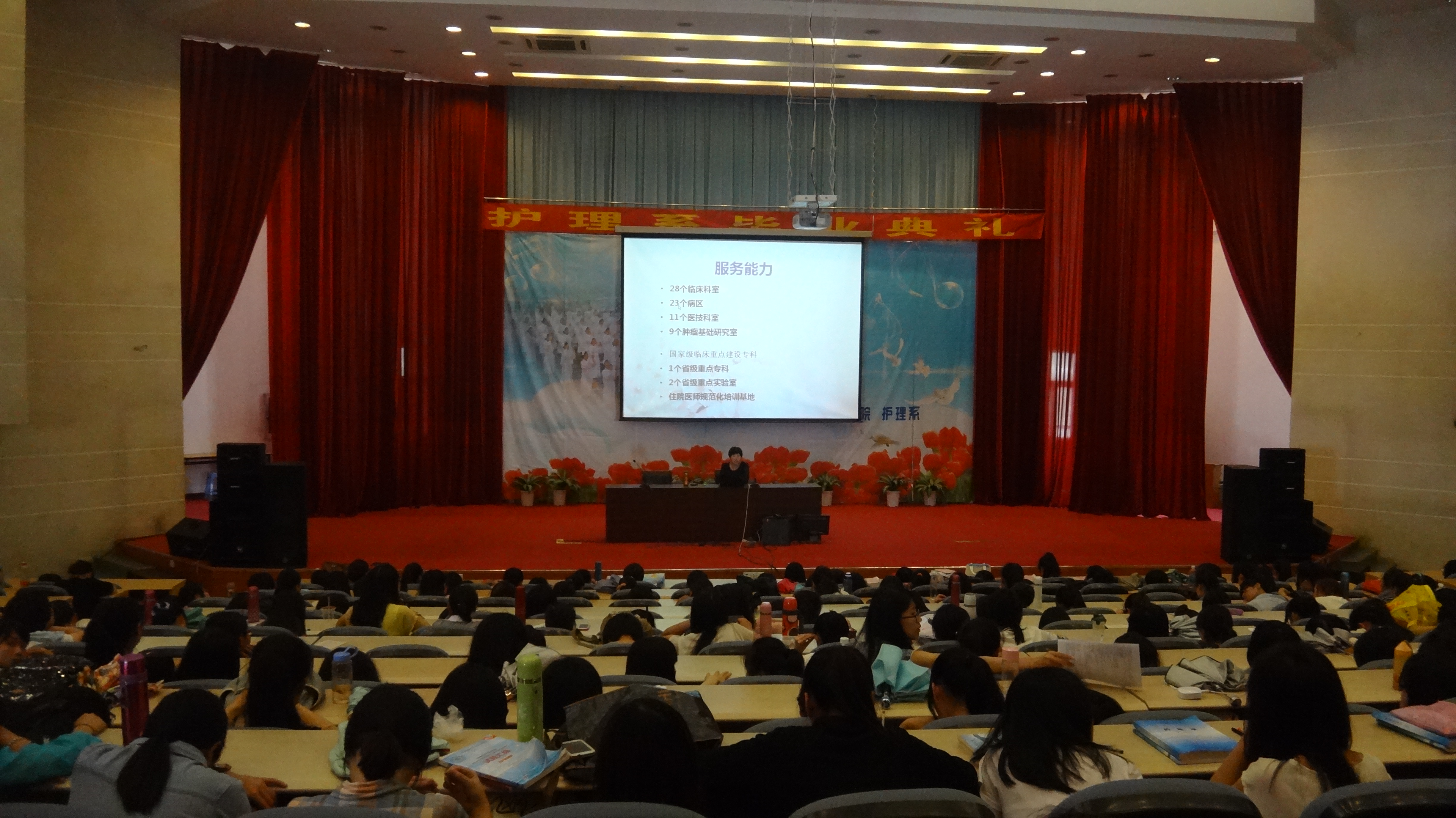 2014年5月14日中午,护理系在学术厅召开与福建省立医院和福建省肿瘤医院共建校企合作班动员大会。大会邀请了福建省立医院护理部副主任金爽、福建省肿瘤医院护理部主任骆惠玉为同学们进行讲解。护理系副主任王珊珊、13级辅导员及13级护理专业全体同学参加了本次动员大会。