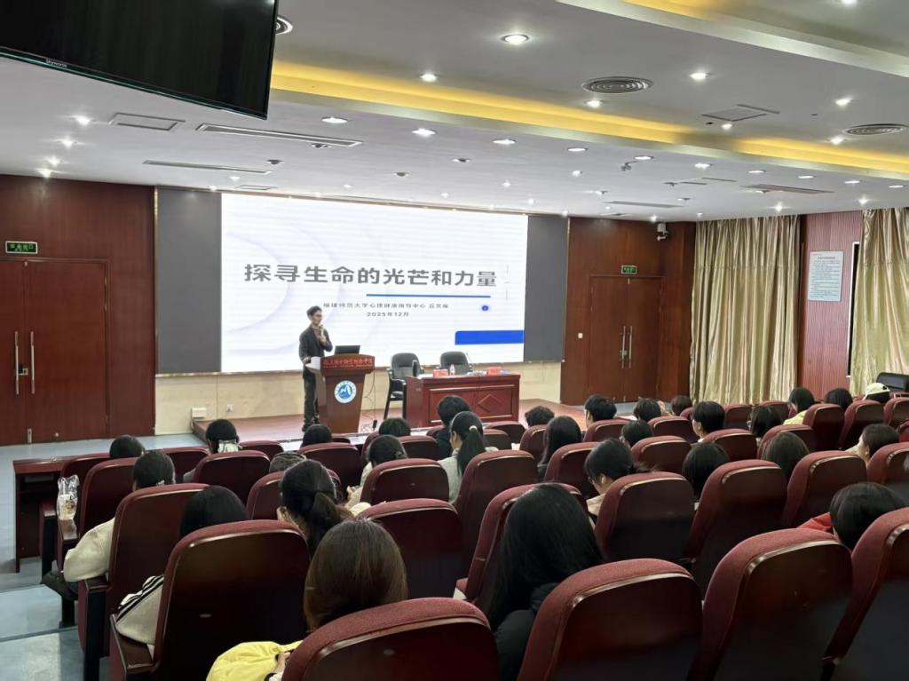 为了提高高校大学生对心理健康的重视程度,培养积极向上的精神,心理健康教育中心于12月18日在笃行楼四楼报告厅举办了《探寻生命的光芒和力量》心理健康教育主题讲座。
