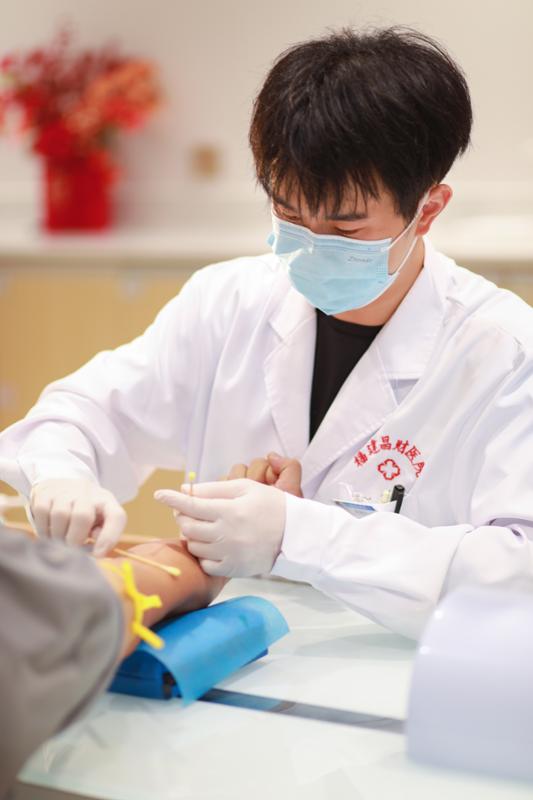 在福建卫生职业技术学院的一堂医学检验实践课上,指导老师的一句话让黄德兴突然意识到,看似简单的采血,是检验的 “第一道门槛”,采血是检验工作的重要一环,也是患者感受医疗服务的直接窗口。同时黄德兴注意到,许多患者尤其是老人和孩子对采血存在恐惧心理。于是,他开始了长达两年的技术钻研。从最开始的泡沫板模拟,到在自己手臂上反复练习,每天几千次的重复训练让他的手指经常抽筋,双臂布满针眼和淤青。