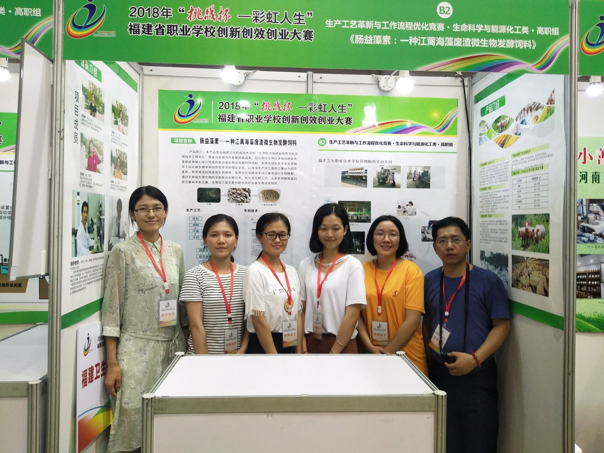 我系李泳宁副主任、尹德爱老师指导,16药学306班蔡美虹、16中药301班林清清、16药学310班陈鸿娇、林碧珠同学组队的《肠益藻素-一种江海藻废渣微生物发酵饲料》在本次大赛中斩获一等奖,并最终获得参加国赛资格。