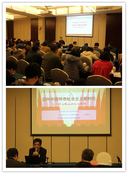 本次培训,我们学习了由福建省委党校林建华教授主讲《迈向社会主义新时代——学习党的十九大精神》的专题讲座。林教授的讲座深入浅出,结合实际生动地宣扬贯彻了党的十九大精神;同时我们也学习了学院林建团副书记主讲的《以党的政治建设为统领