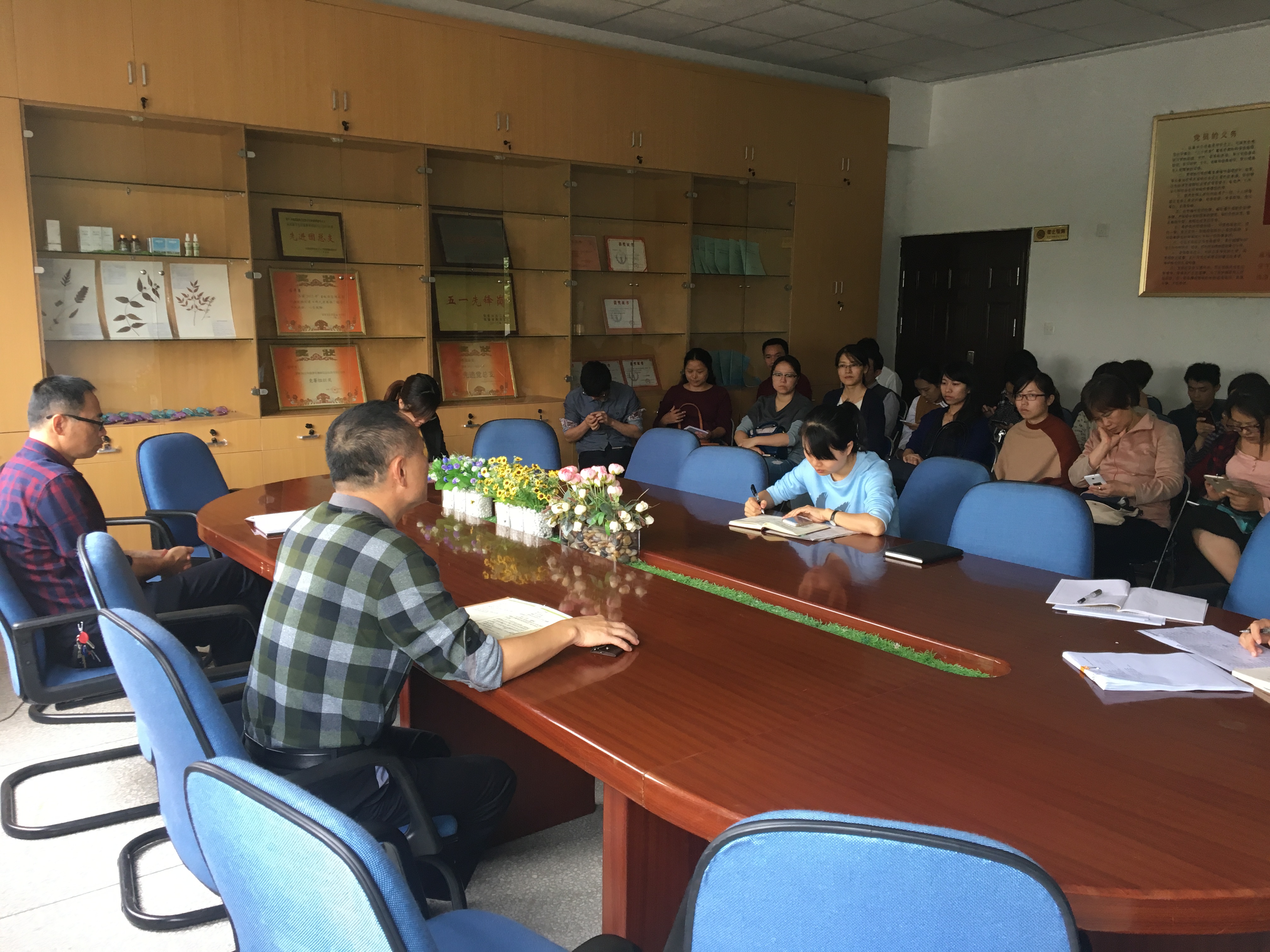 11月7日中午,药学系组织召开了省文明校园迎检工作部署会,全体教职工参加本次会议。会议由系党总支总支书记郑力宏同志主持。