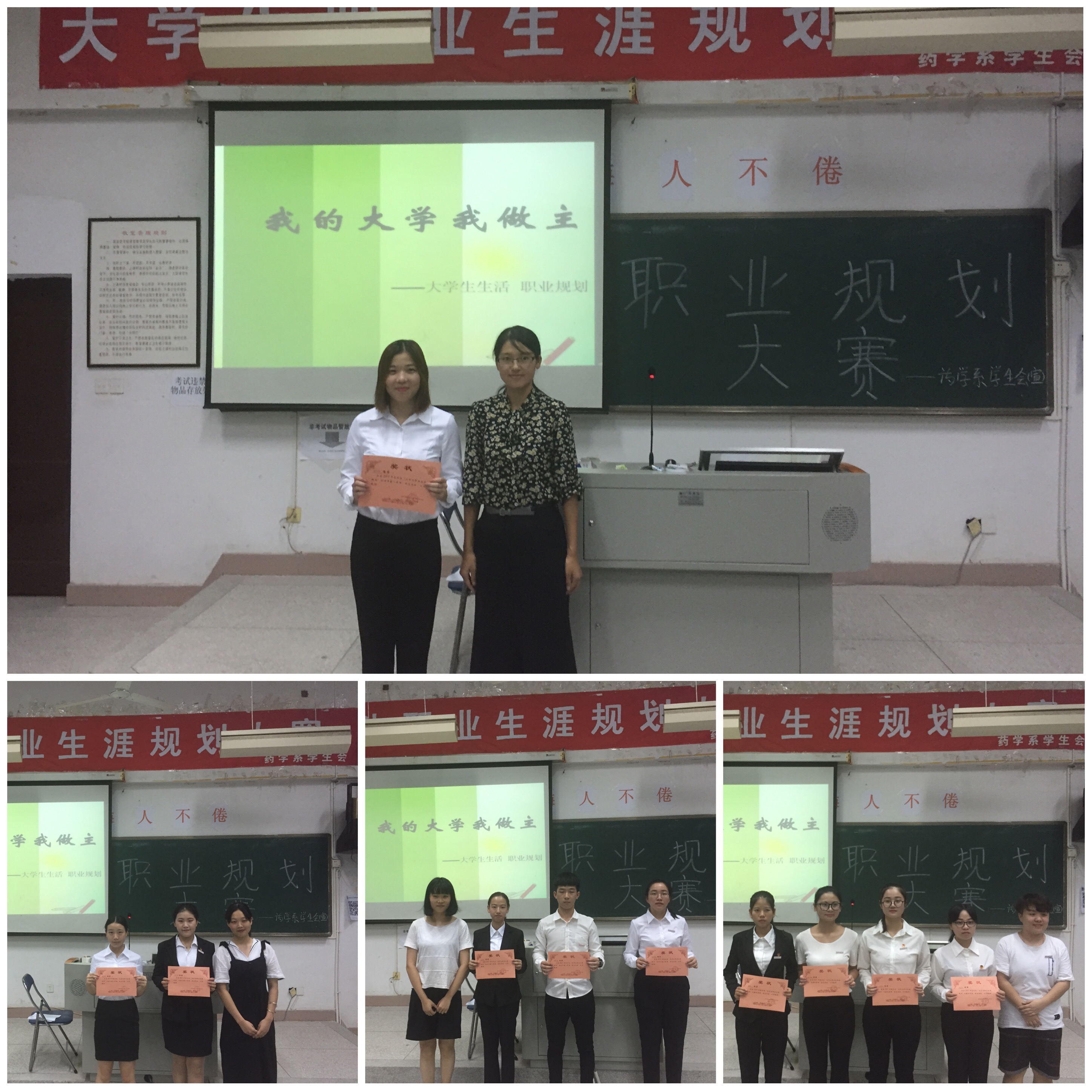 为帮助学生合理规划、利用大学时光,进行正确的职业定位,药学系于2017年9月26日在药二阶举行大学生职业生涯规划大赛,团总支副书记尹德爱老师、药学系学生会主席蔡美虹、团副吴婕、副主席刘晋萍担任评委,两委会成员及各班观众到场观看比赛。
