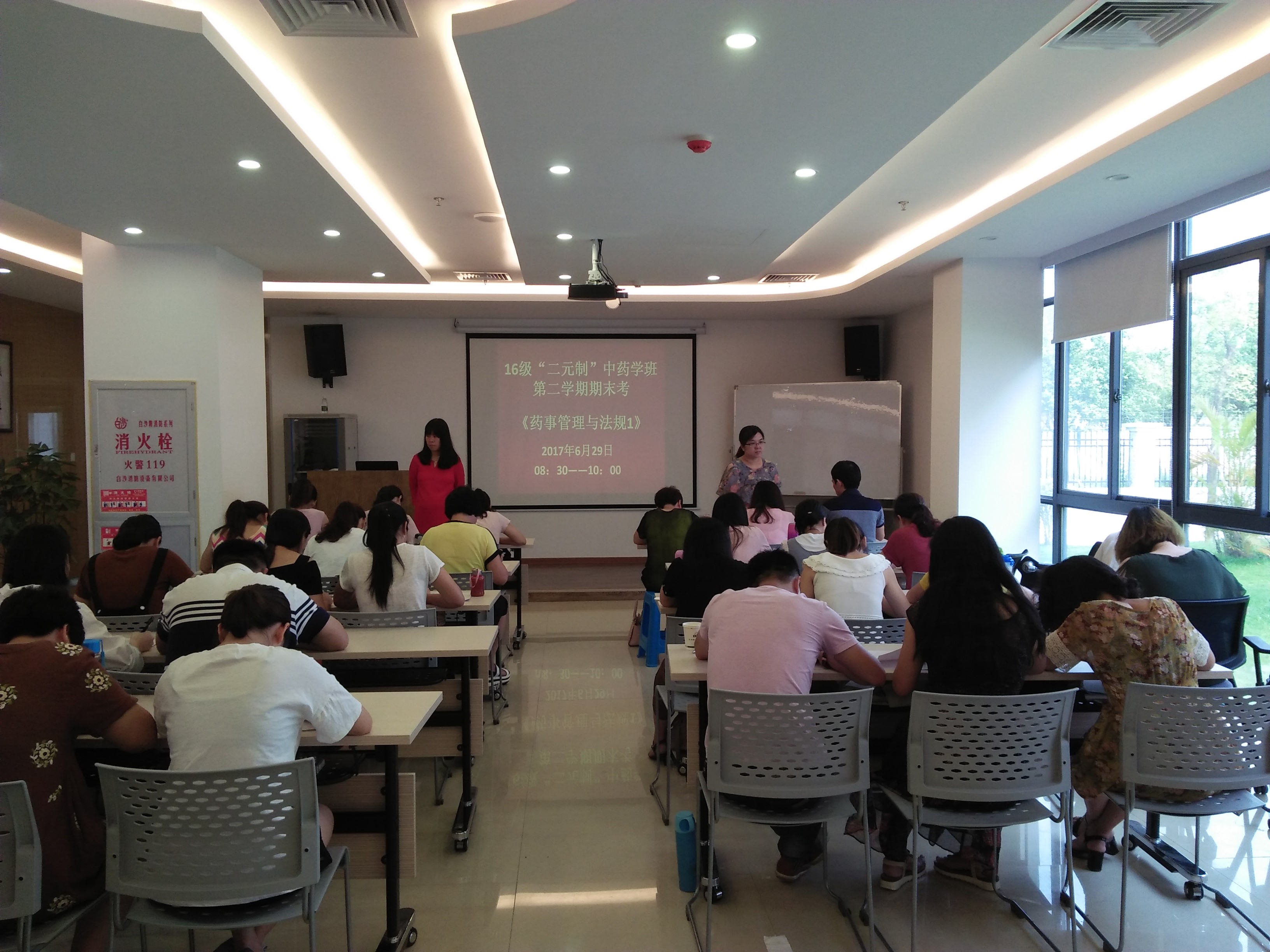 6月29日药学系副主任潘雪丰和班主任张杏老师前往厦门美商医药有限公司进行期末监考。本次期末考试共安排《中医诊断学1》、《中药学》、《按摩与拔罐》、《药事管理法规》四门课程。全体学员冒着酷暑从各地前往公司参加了考试。药店管理学院潘虹院长和企业班主任杨帆进行了精心组织,考试期间秩序井然。 文/潘雪丰 图/杨帆 编辑/潘雪丰