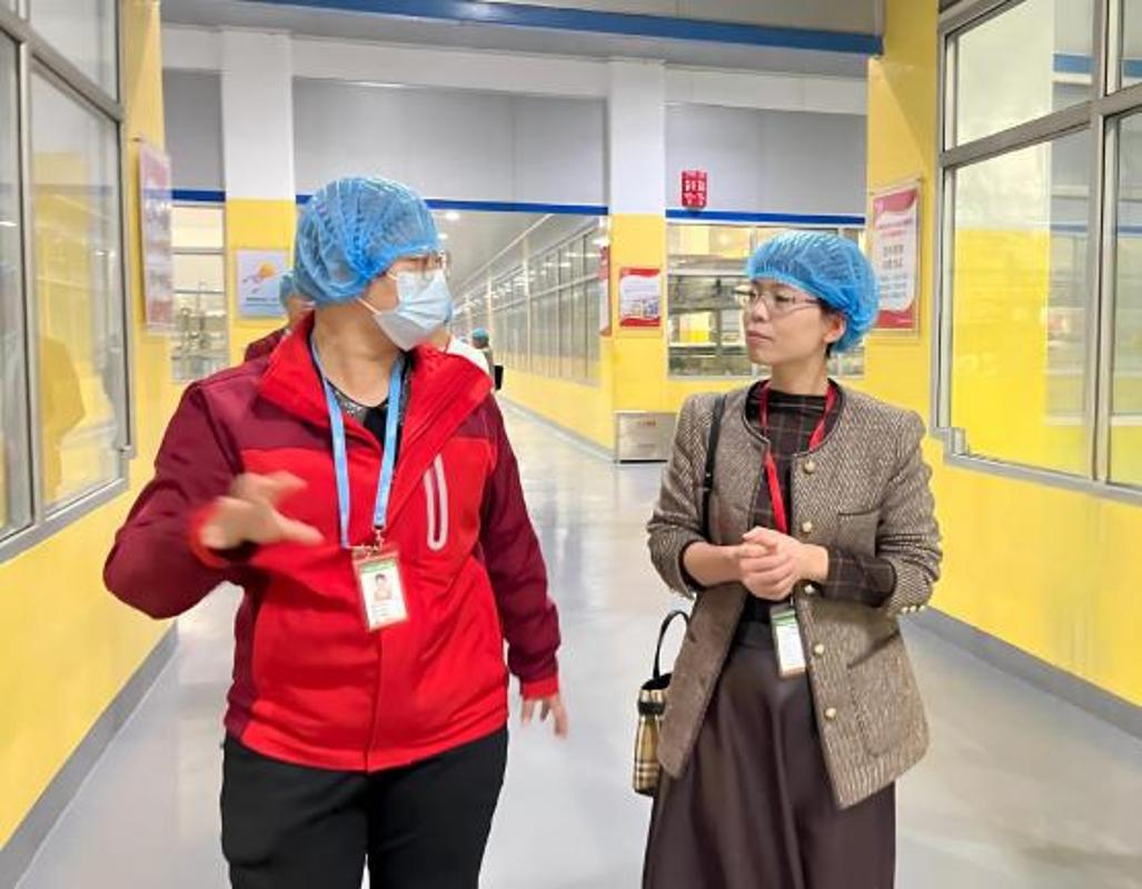 参观环节中,盼盼向调研组展示了烘焙、饮料等主要生产线与在线监测点位,并在品质检验中心详细介绍了从原料检验到成品放行的全过程,使学院团队更加精准掌握企业品控岗位能力要求。